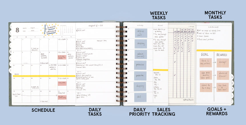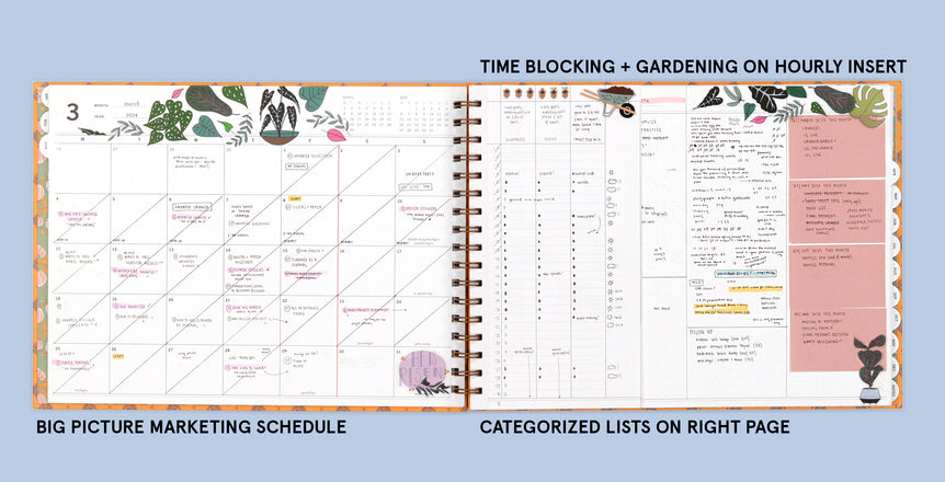 Every Laurel Denise planner layout provides space for daily, weekly, and monthly task lists and notes, featuring the signature all-in-one view that sets Laurel Denise apart. The difference between our planners is (mostly) in the short pages, which are the daily and weekly pages.