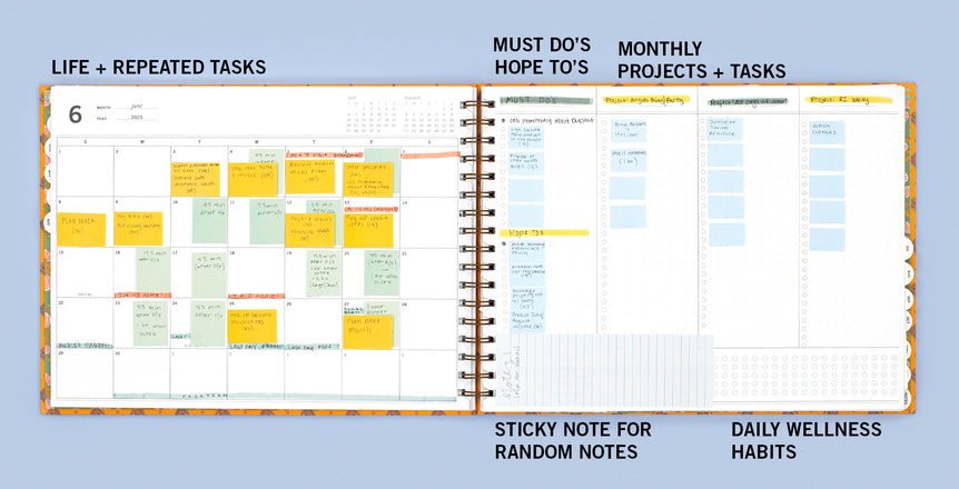 Transfer the deadlines and projects from your brain drop into your monthly and weekly planner views. You can set this up one month at a time or map out your entire year in advance. (Pro Tip: Consider planning just three months ahead. Use sticky notes as placeholders for appointments in later months—your planning style might evolve, and this approach keeps things flexible. - Assign Tasks