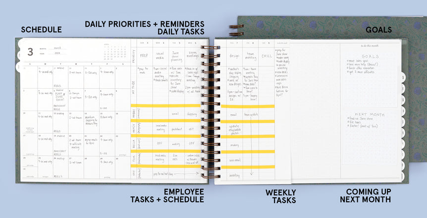 As with all of our planners, these definitions are fluid. You can be like Nancy and include details in your monthly view (like that dentist appointment) and use the short pages to echo those details and include detailed tasks, you can be like Mabby and use the monthly view for your family's schedule and the weekly pages for your daily task lists, you can be like Laurel and use the monthly view for your marketing schedule and the weekly pages for your time blocked schedule and daily task list, or like many of the users out there who have found their best way. The recommendation above is the most overarching and basic use and will help you to get started with your Laurel Denise planner.