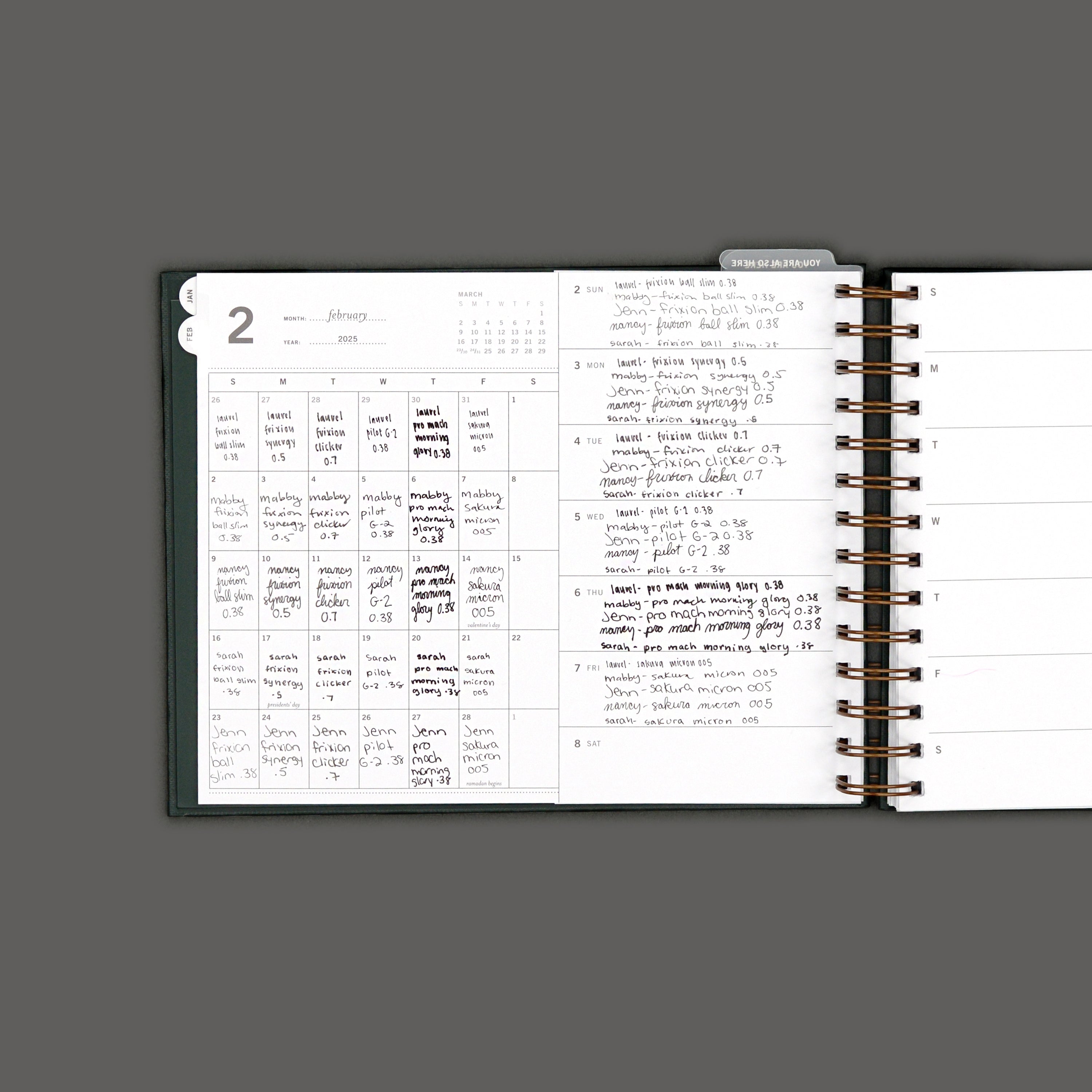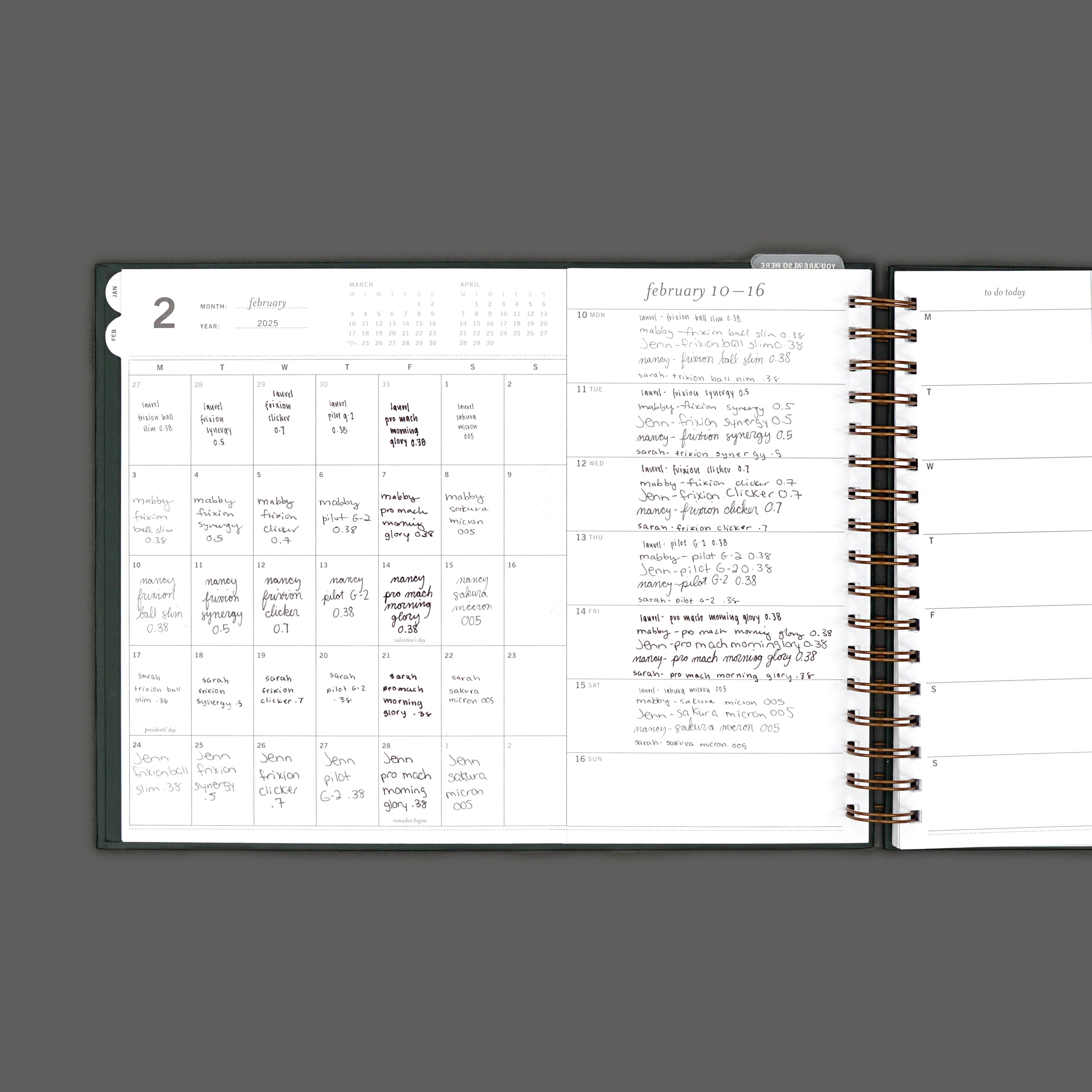 - Hold the planner and feel how the coil sits, comfort matters!