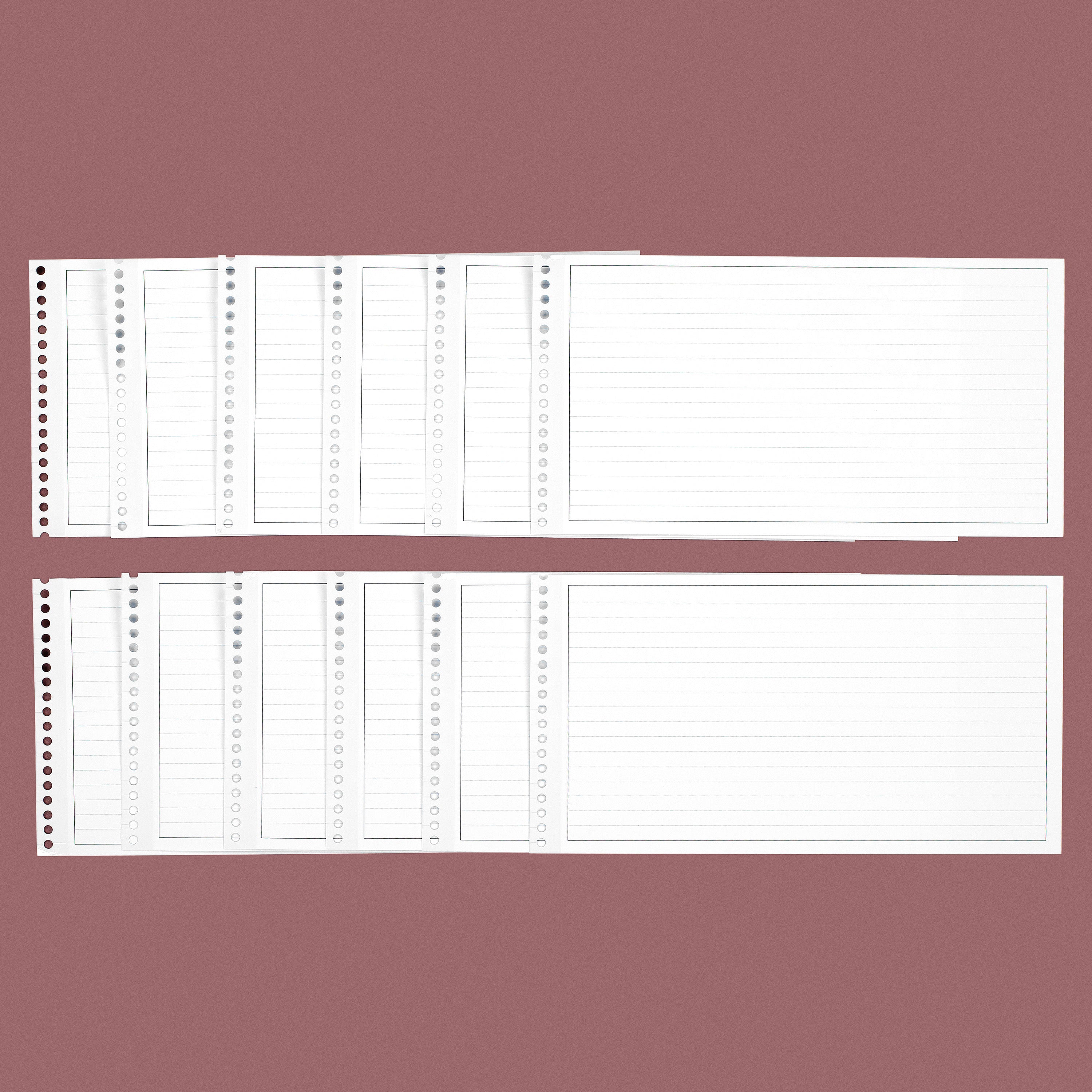 We recommend adding no more than 12 extra sheets to your planner. If you remove the back note pages, you can go up to 20, but no more. Pro tip: Store used inserts in your planner box for safekeeping.