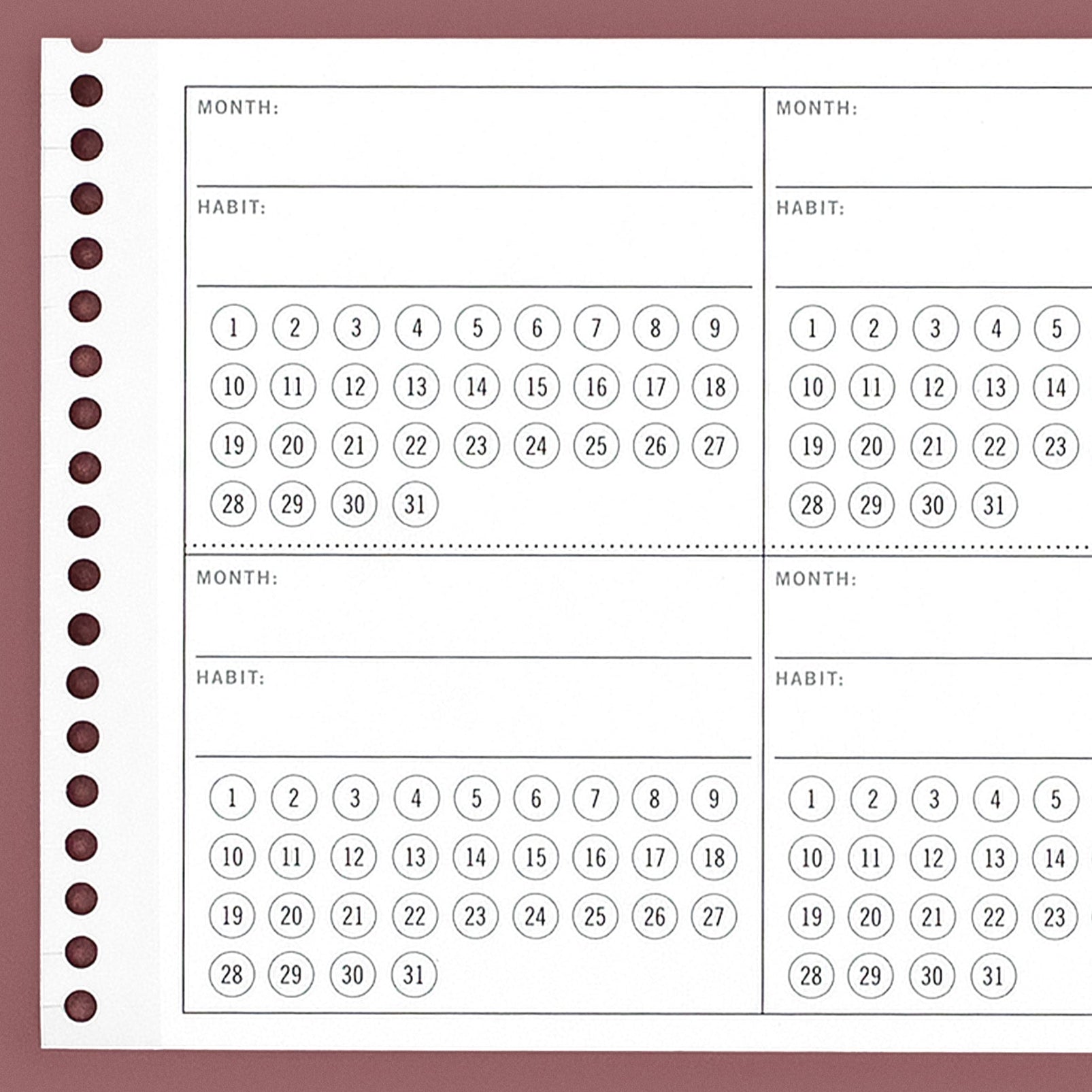 Ideal for short time- blocking and/or daily lists that line up perfectly with the days in your month. |