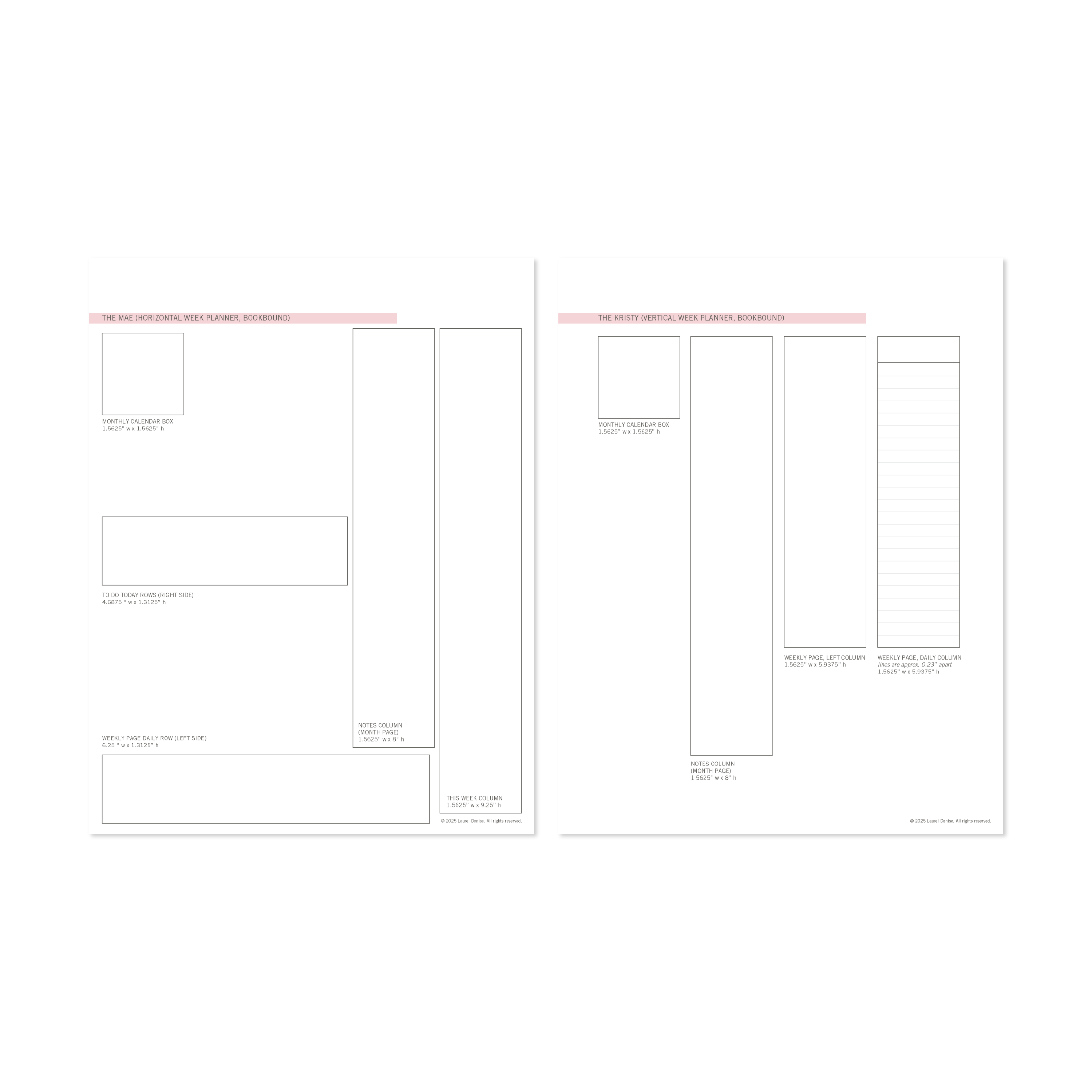Test your writing in our various planner layouts before you commit to a size and a style! Monthly, daily, and weekly spaces included for all of the Laurel Denise planner layouts and sizes.