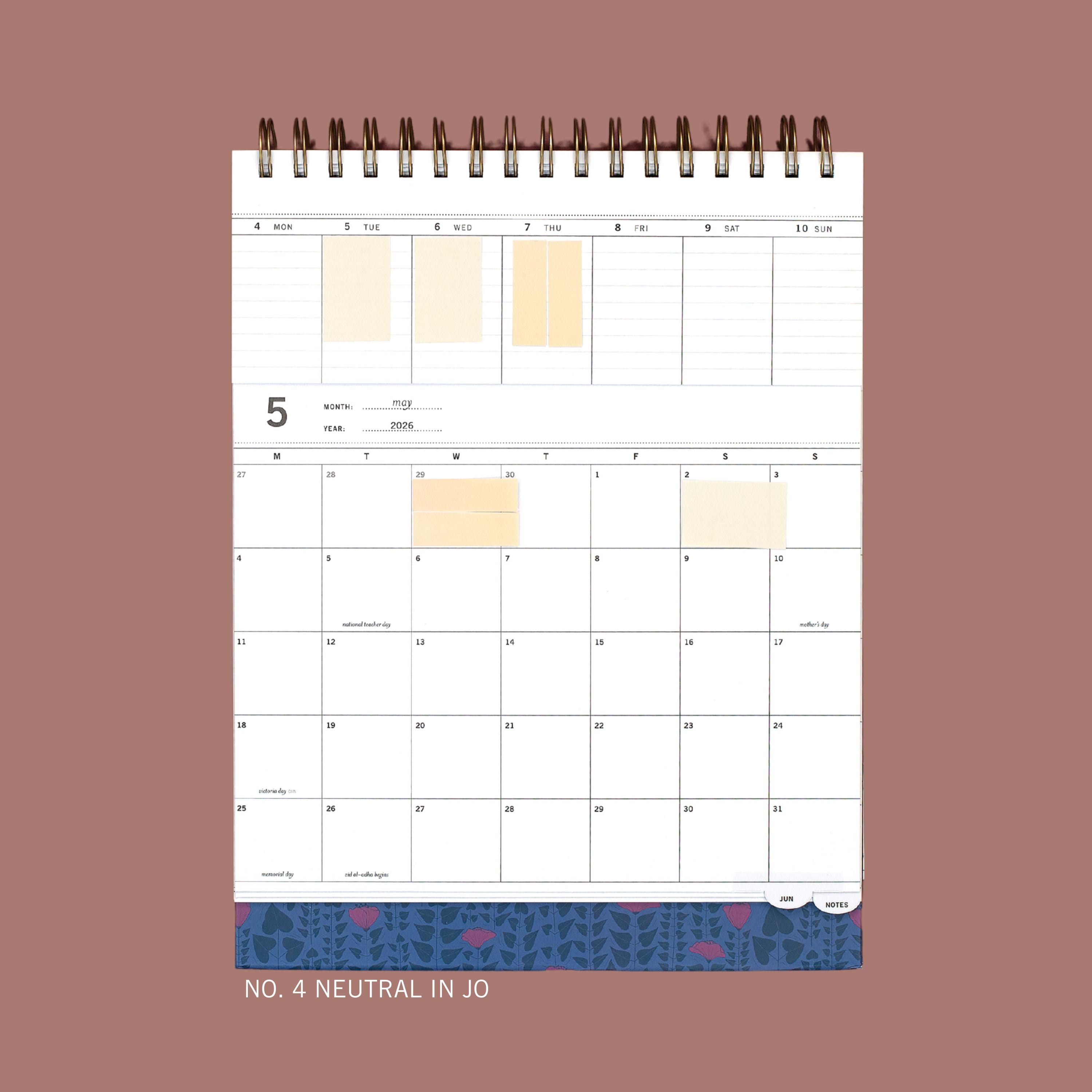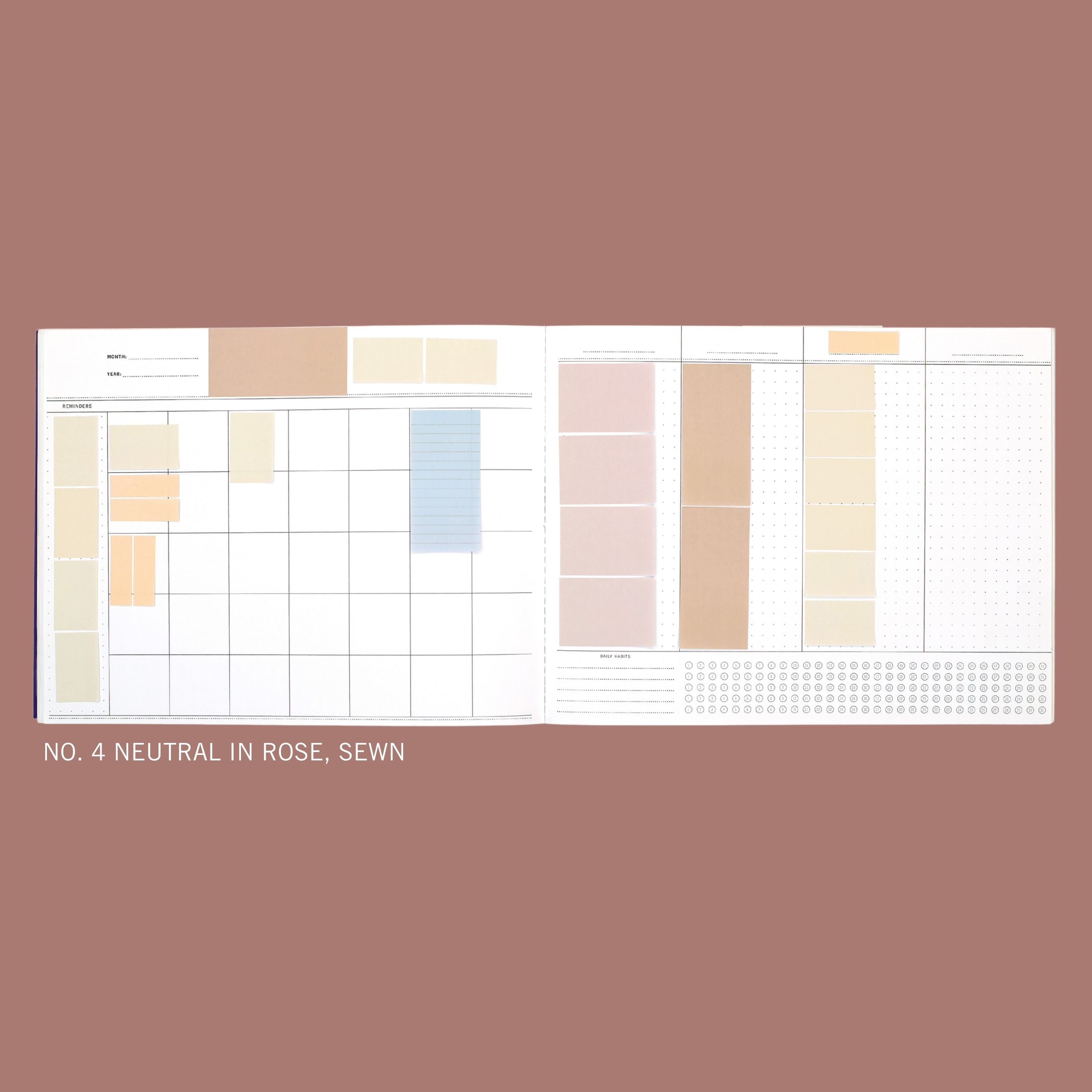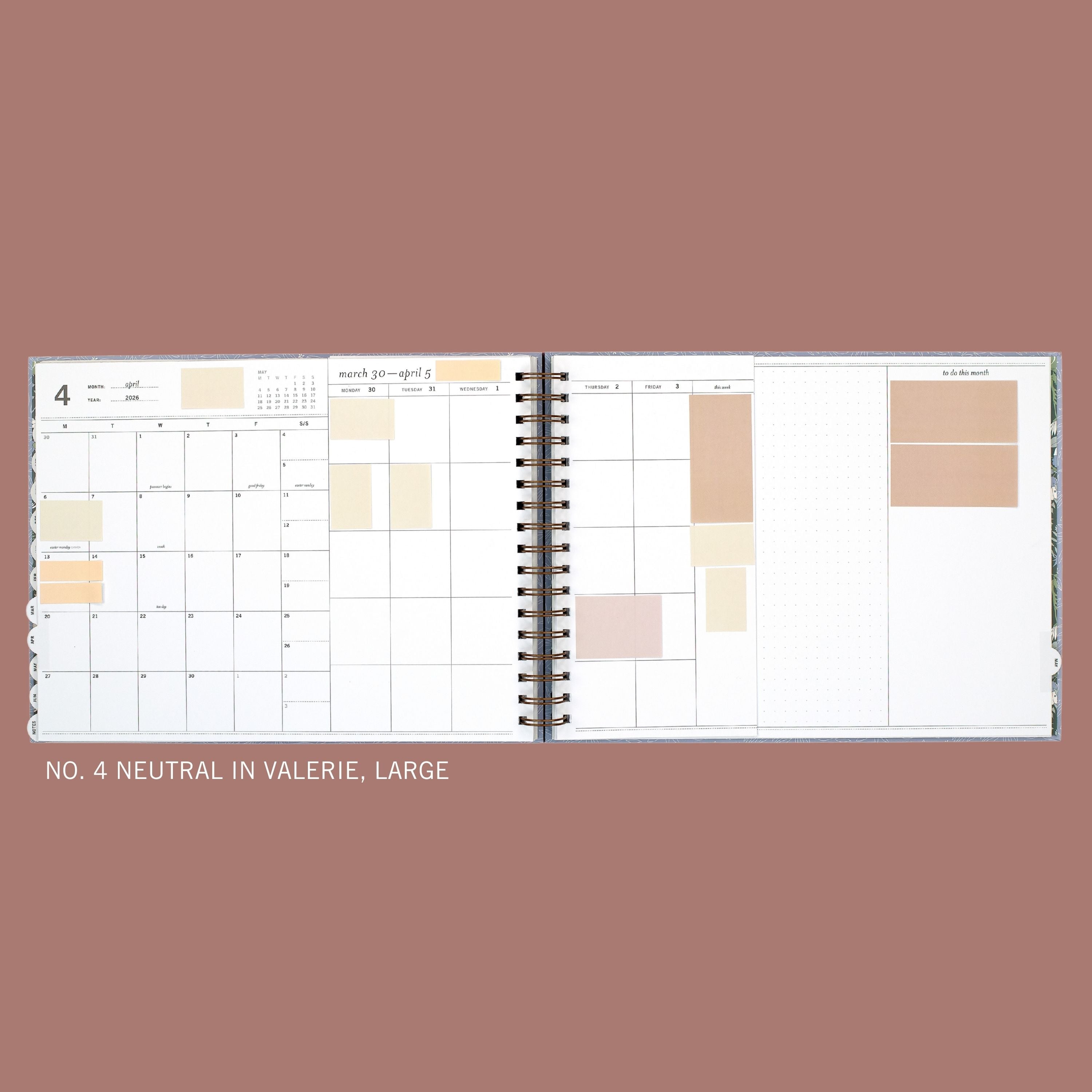 The Rose planner pairs a full monthly spread with a four-column layout for tasks, goals, or categories—perfect if you keep your schedule digital, use the Kanban method, or like pulling from a master list based on your time and energy.