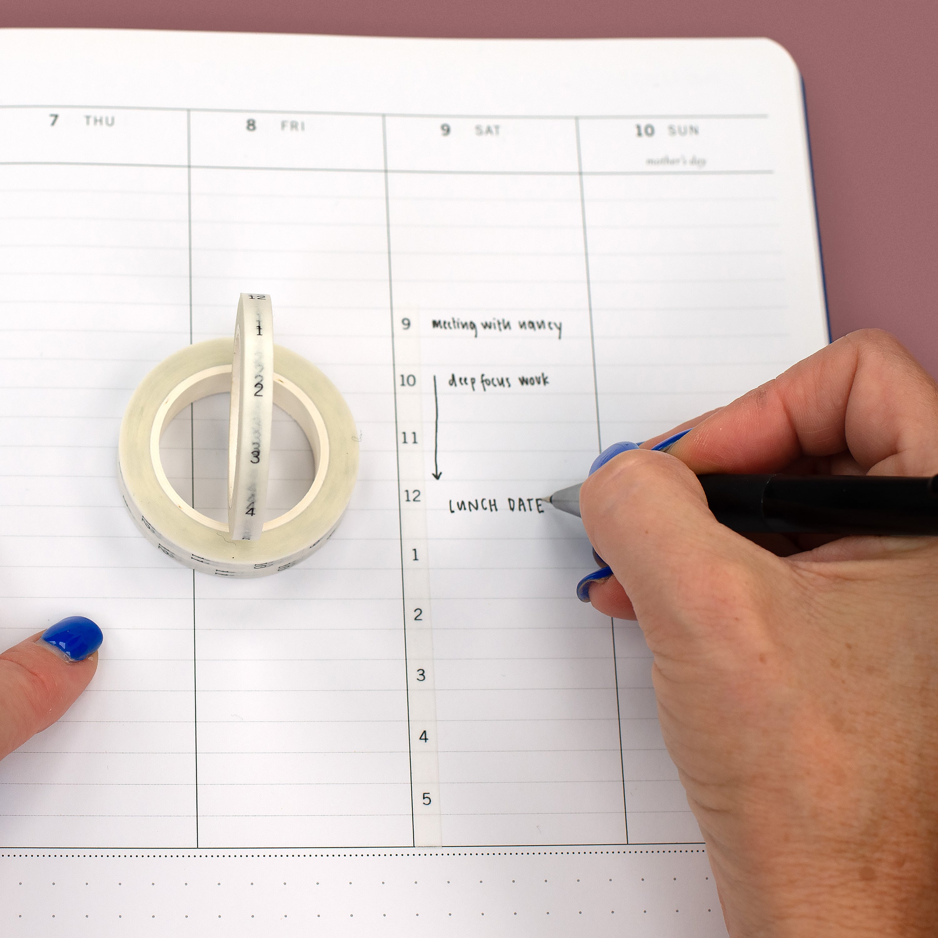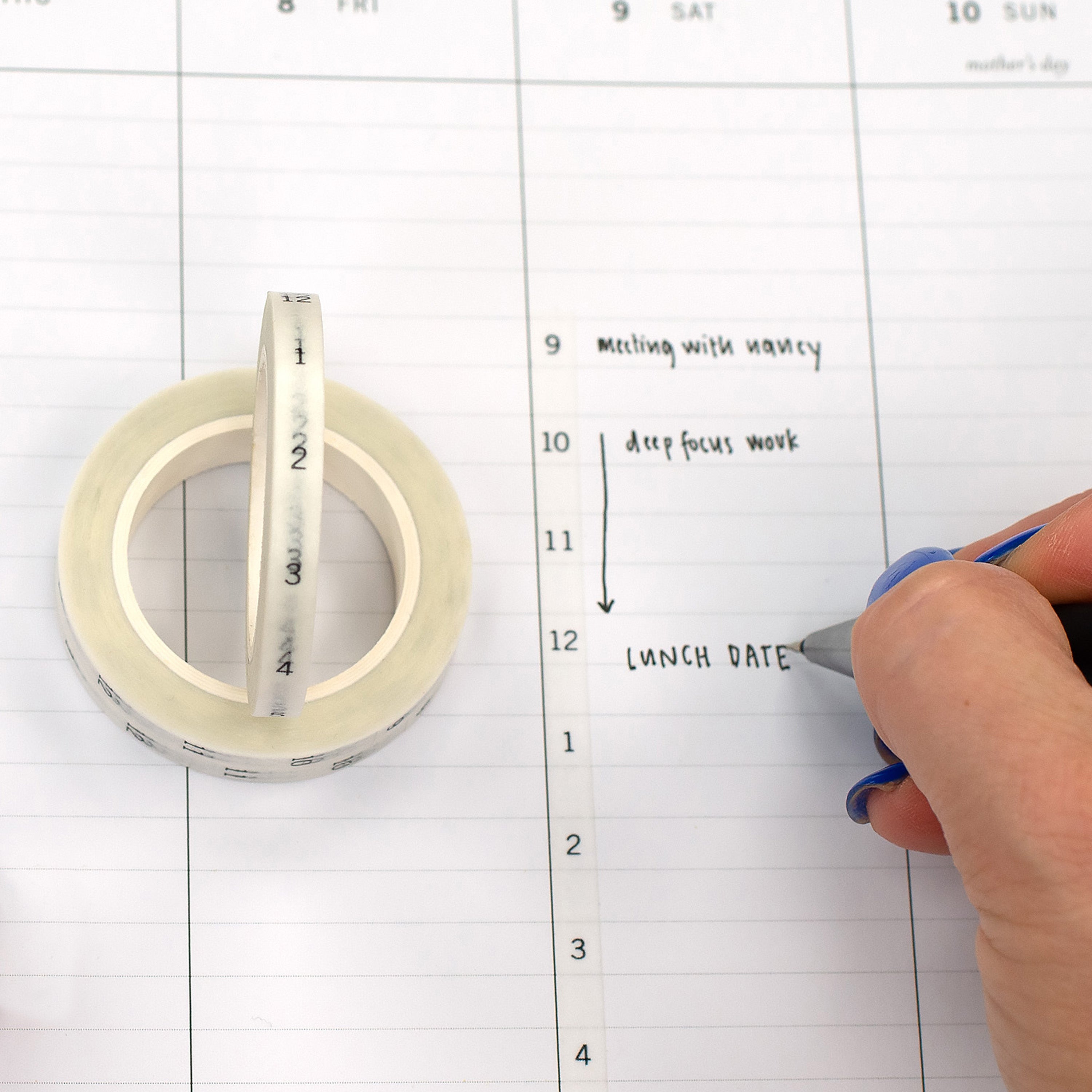Save time writing in each hour for your time blocking planner section with our hourly washi tape.